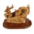 Die fein gearbeiteten Figuren ruhen auf einer dynamisch gestalteten Basis aus Olivenholz mit wunderschöner Maserung. Das warme, lebendige Holz unterstreicht die Bewegung und Dramatik der Szene.