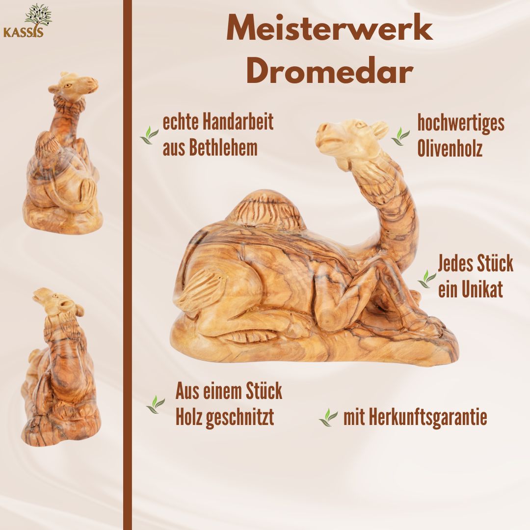 Handgeschnitztes Dromedar aus Olivenholz – Kunstvolle Krippenfigur aus Bethlehem (11,5 cm)