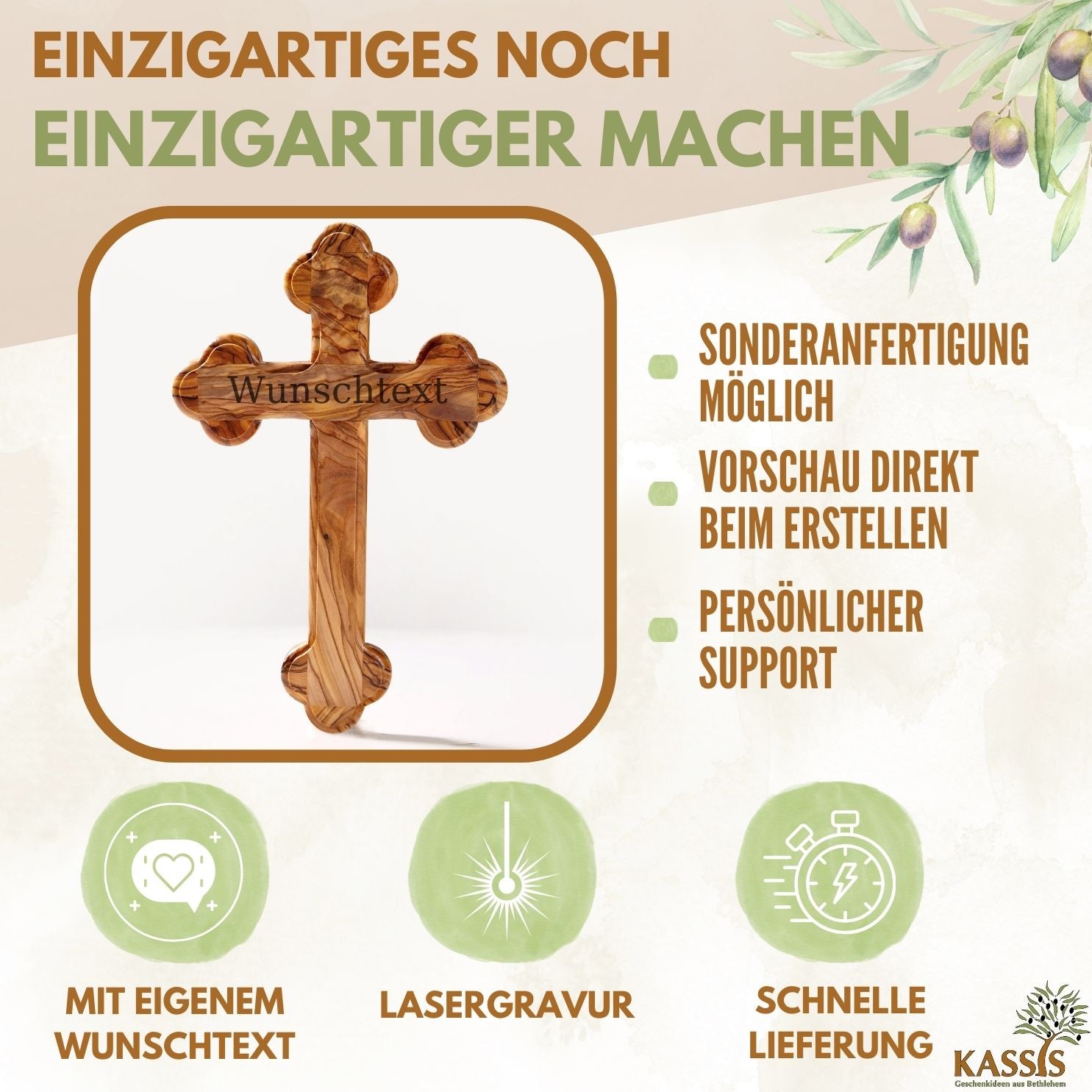 🌿NACHHALTIGES OLIVENHOLZ: Unsere einzigartigen Kreuze werden aus nachhaltig geerntetem Olivenholz hergestellt, wodurch wir zur Erhaltung der Umwelt beitragen.
