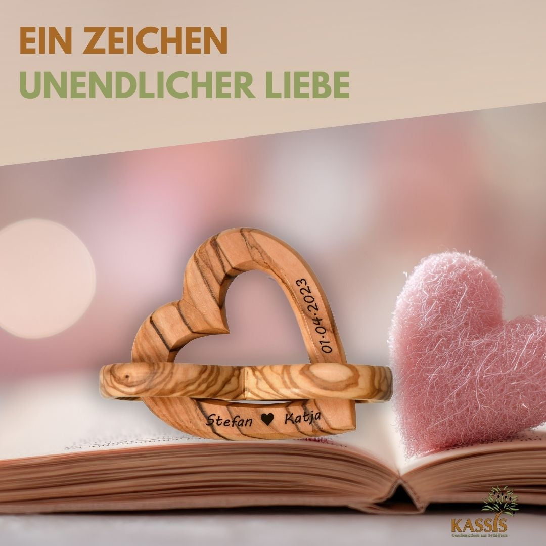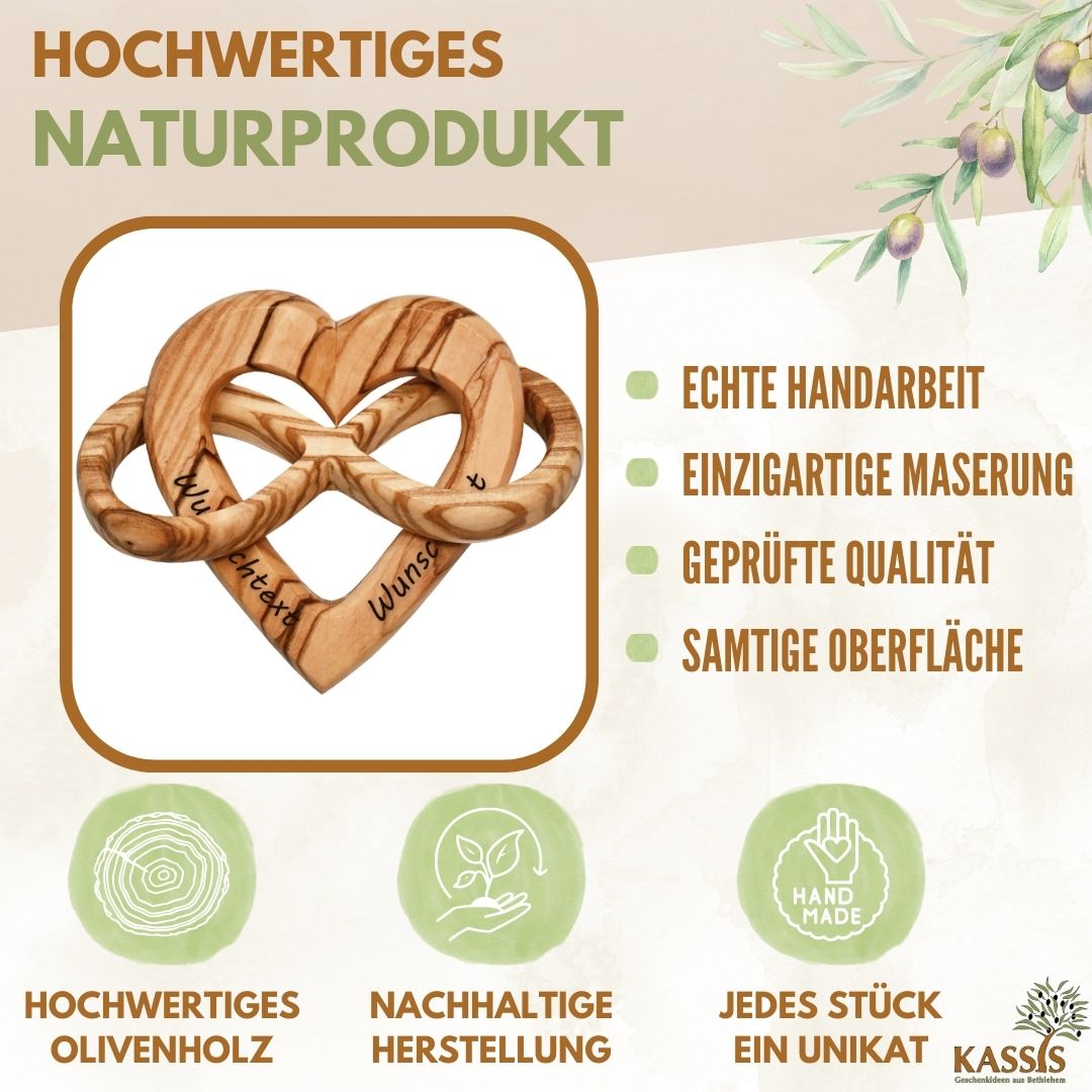 • 1× Herz–Unendlichkeit-Dekoobjekt aus Olivenholz