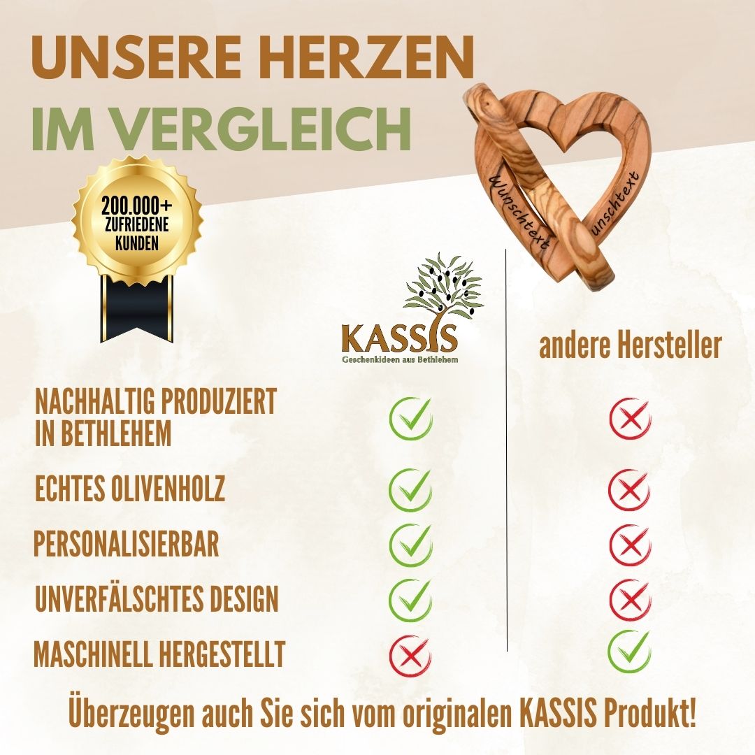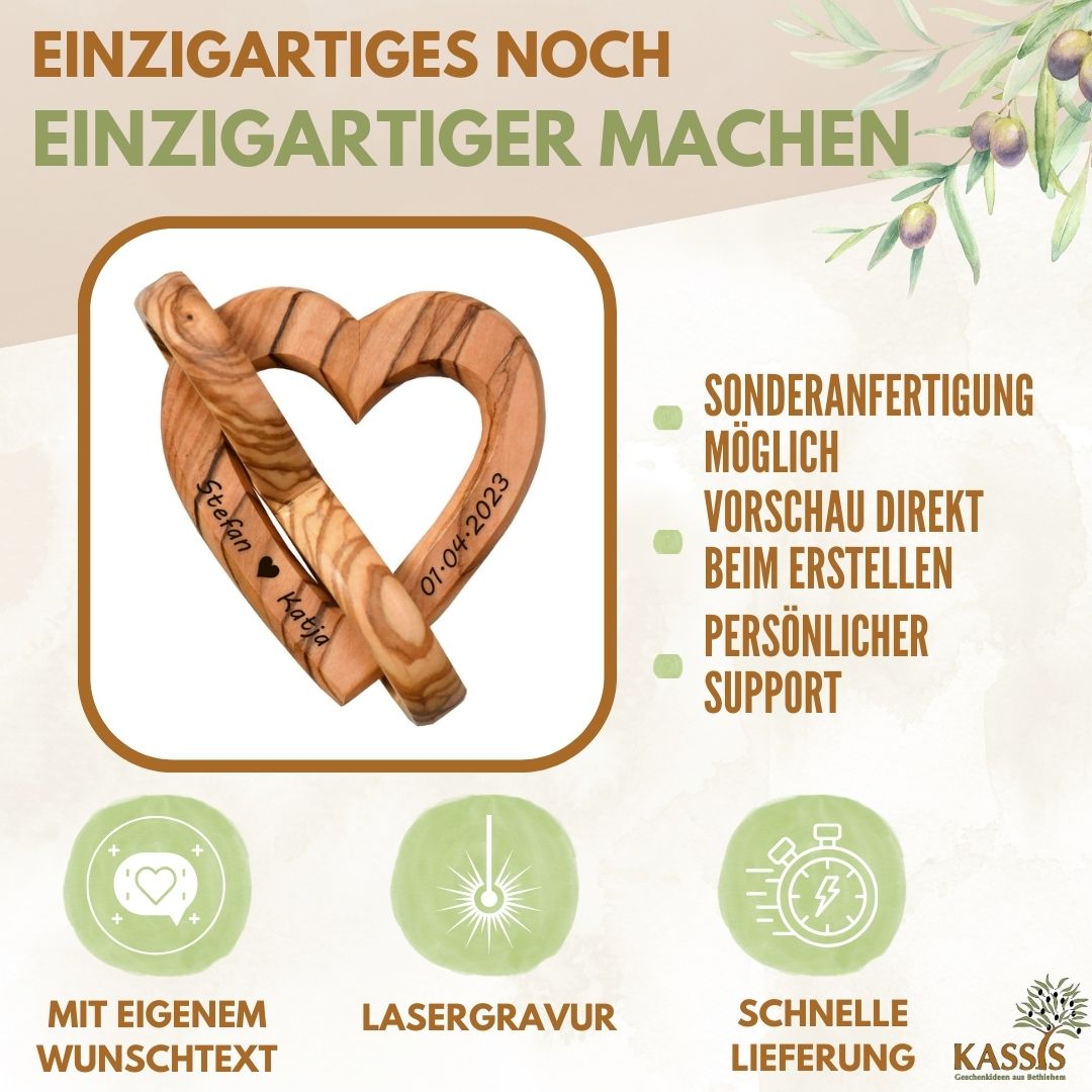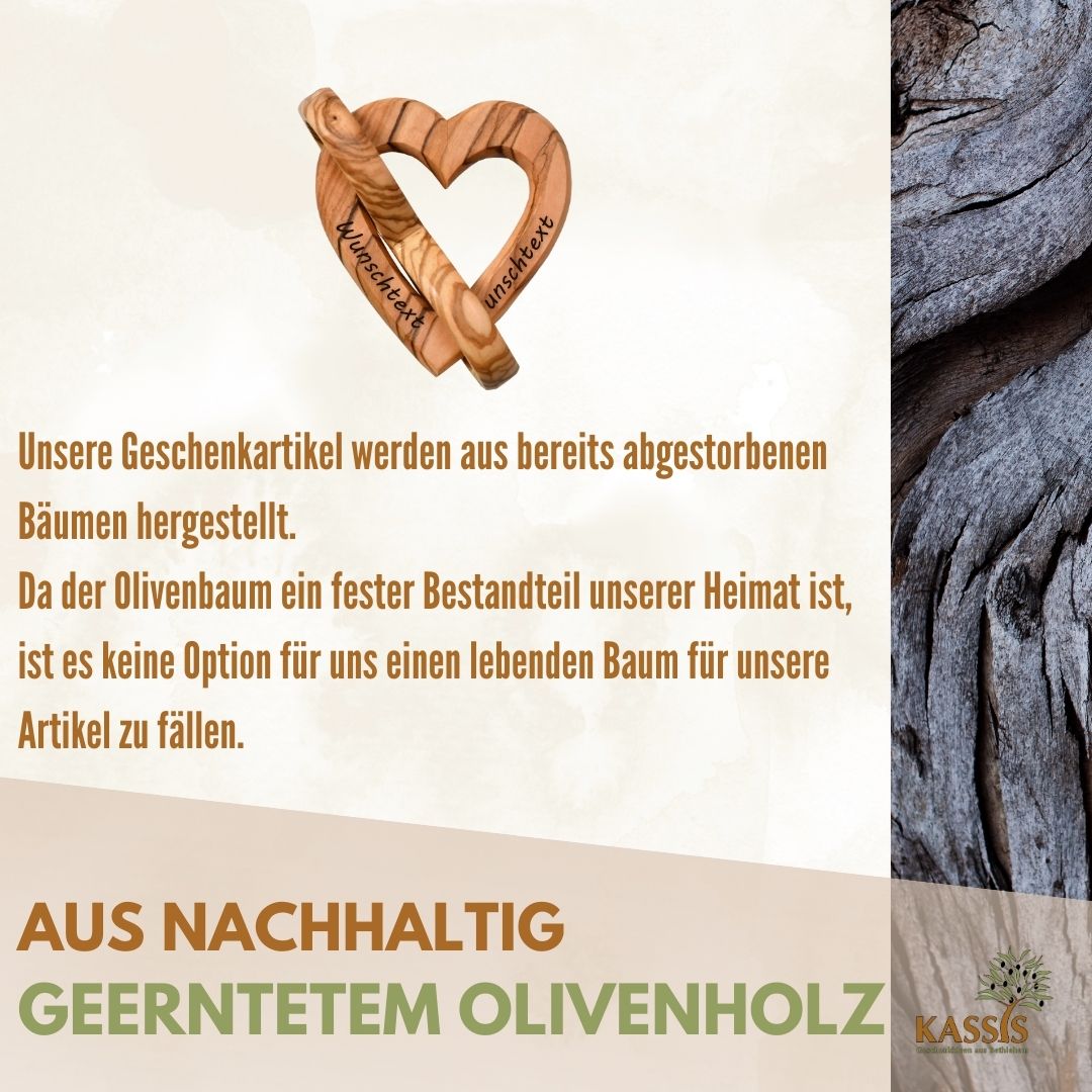 Olivenholz ist ein langlebiges, umweltfreundliches Naturmaterial. Damit ist dieses Geschenk nicht nur emotional wertvoll, sondern auch eine bewusste Wahl.