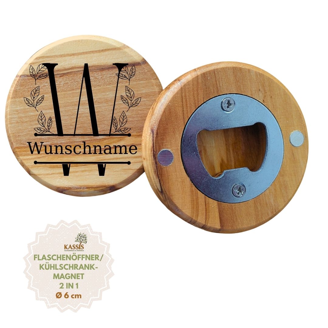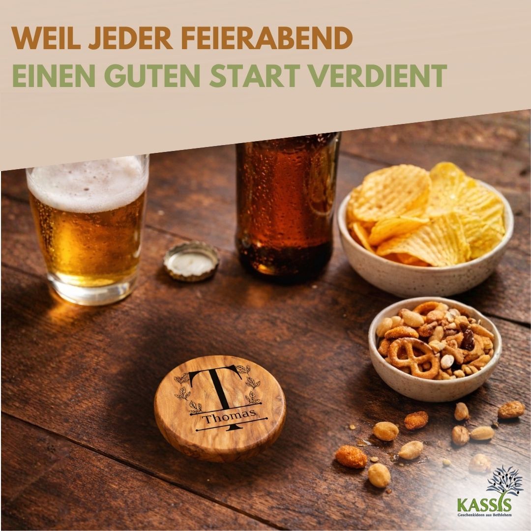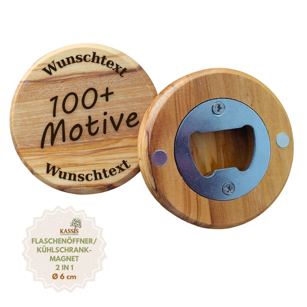 Ein praktisches und zugleich persönliches Accessoire für Ihre Küche: Unser personalisierter Flaschenöffner als Kühlschrankmagnet aus Olivenholz verbindet Funktionalität, natürliche Eleganz und individuelles Design.