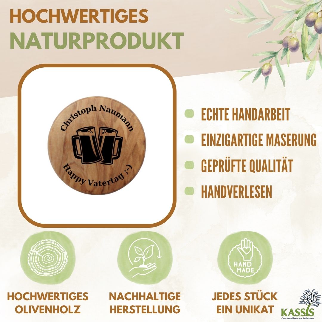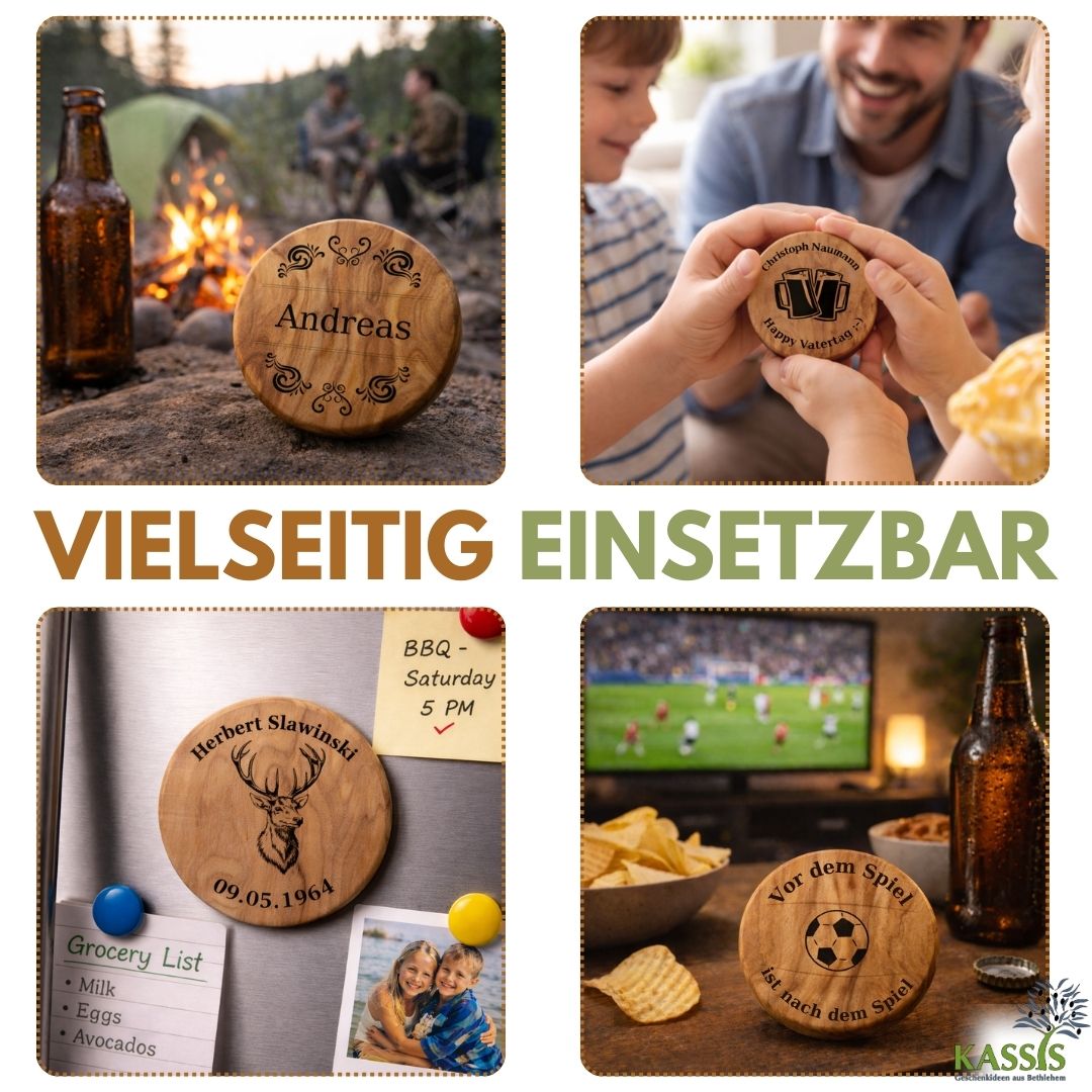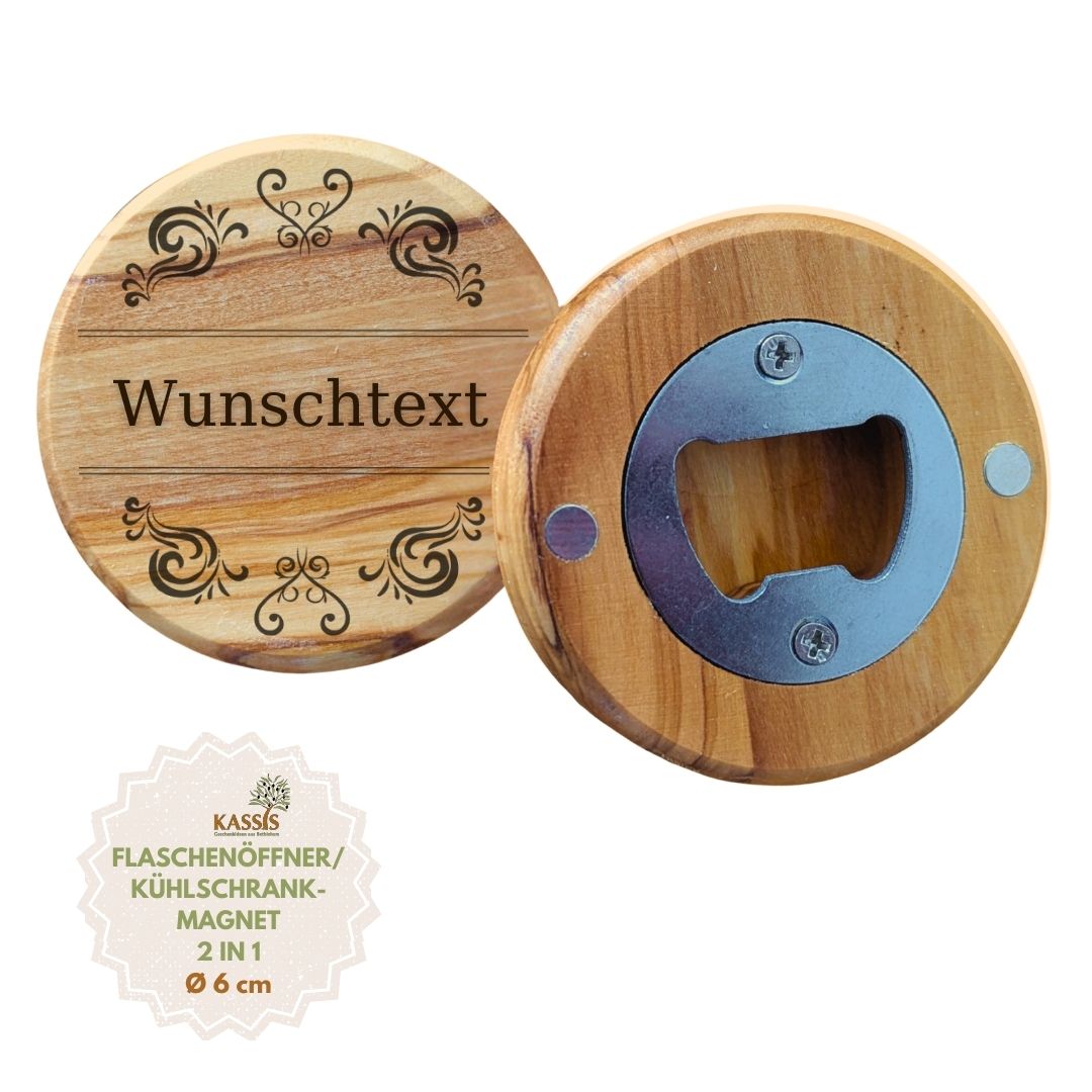 Ein praktisches und zugleich persönliches Accessoire für Ihre Küche: Unser personalisierter Flaschenöffner als Kühlschrankmagnet aus Olivenholz verbindet Funktionalität, natürliche Eleganz und individuelles Design.
