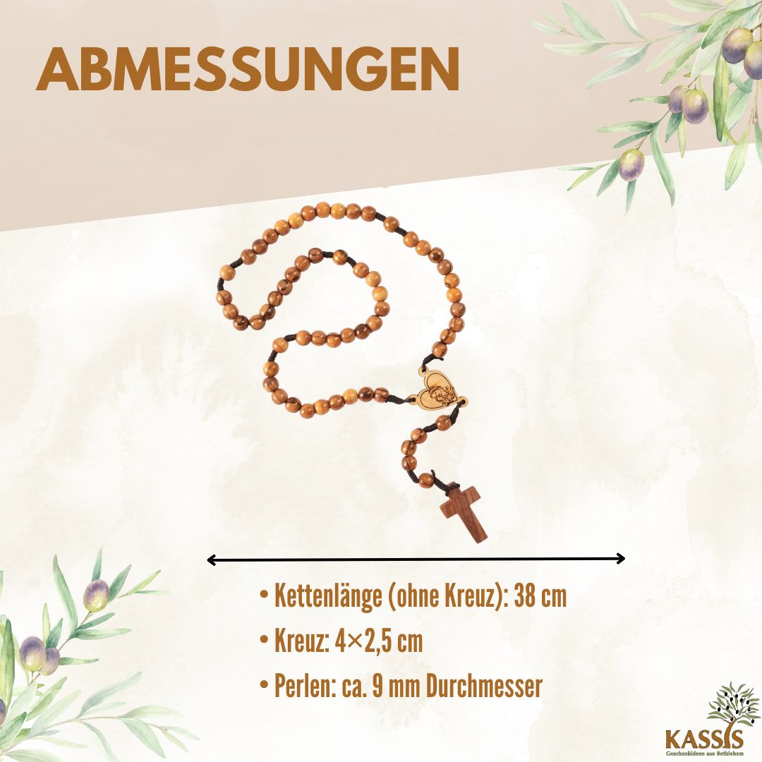 Rosenkranz mit Herz und Maria aus Olivenholz