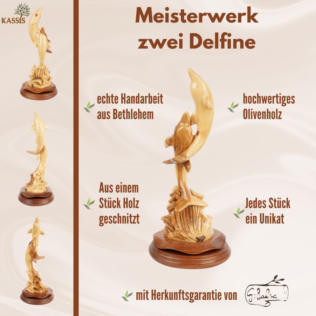 • 1 Skulptur „Zwei Delfine“ aus Olivenholz